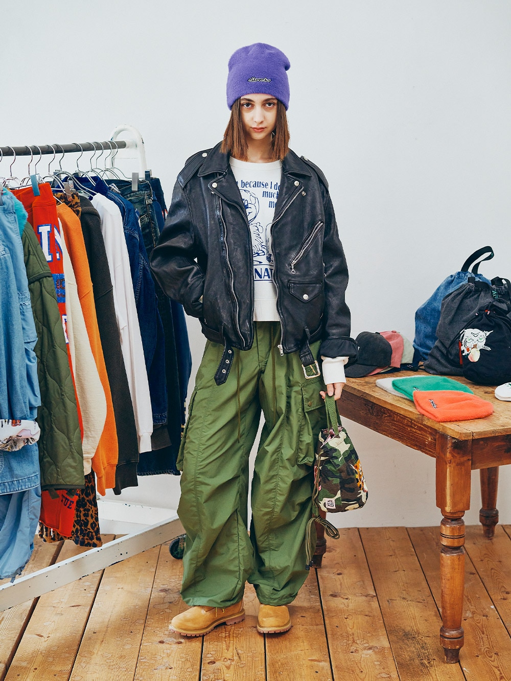 12月のRNA × PINK MOTELが届けるテーマは「ユーズドショップ」。 PINK MOTELが掲げるキーワード“SMALL JUNK STAND”は、ふいに現れる小さな屋台のユーズドショップをイメージしたもの。 コンパクトながら、独特の空気感がぎゅっと詰まった世界です。 ラインナップには、無国籍でB級感のある、カルチャーが入り混じった“JUNK”なセレクトがずらり。 PINK MOTELはユーズドテイストを忠実に再現したアイテムを展開し、屋台名物のレモネードをTシャツのビジュアルとして遊び心たっぷりに表現。 RNAからは、この屋台の世界観をより広げる特別なアイテムたちが登場します。 過去の価値観と異文化をミックスし、新しいスタイルへと組み替えた今回のコレクション。 不思議な屋台にふらっと立ち寄るように、ユニークなアイテムとの出会いを楽しんでみてください。