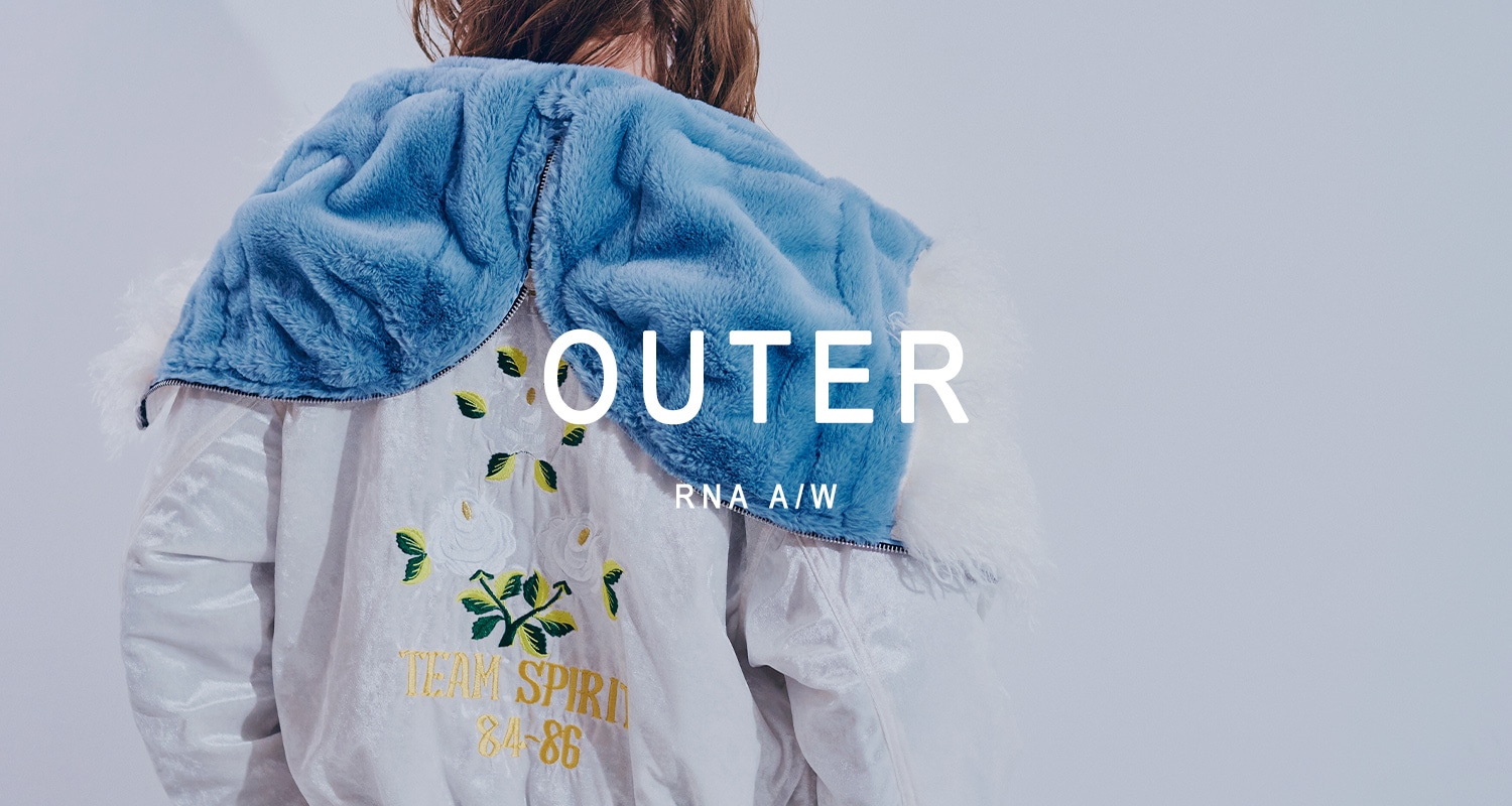 | 冬の主役はやっぱりアウター。 存在感あるデザインやミリタリーのエッセンスを効かせ、 シンプルな着こなしも、羽織るだけで一気にRNAムードに。 |