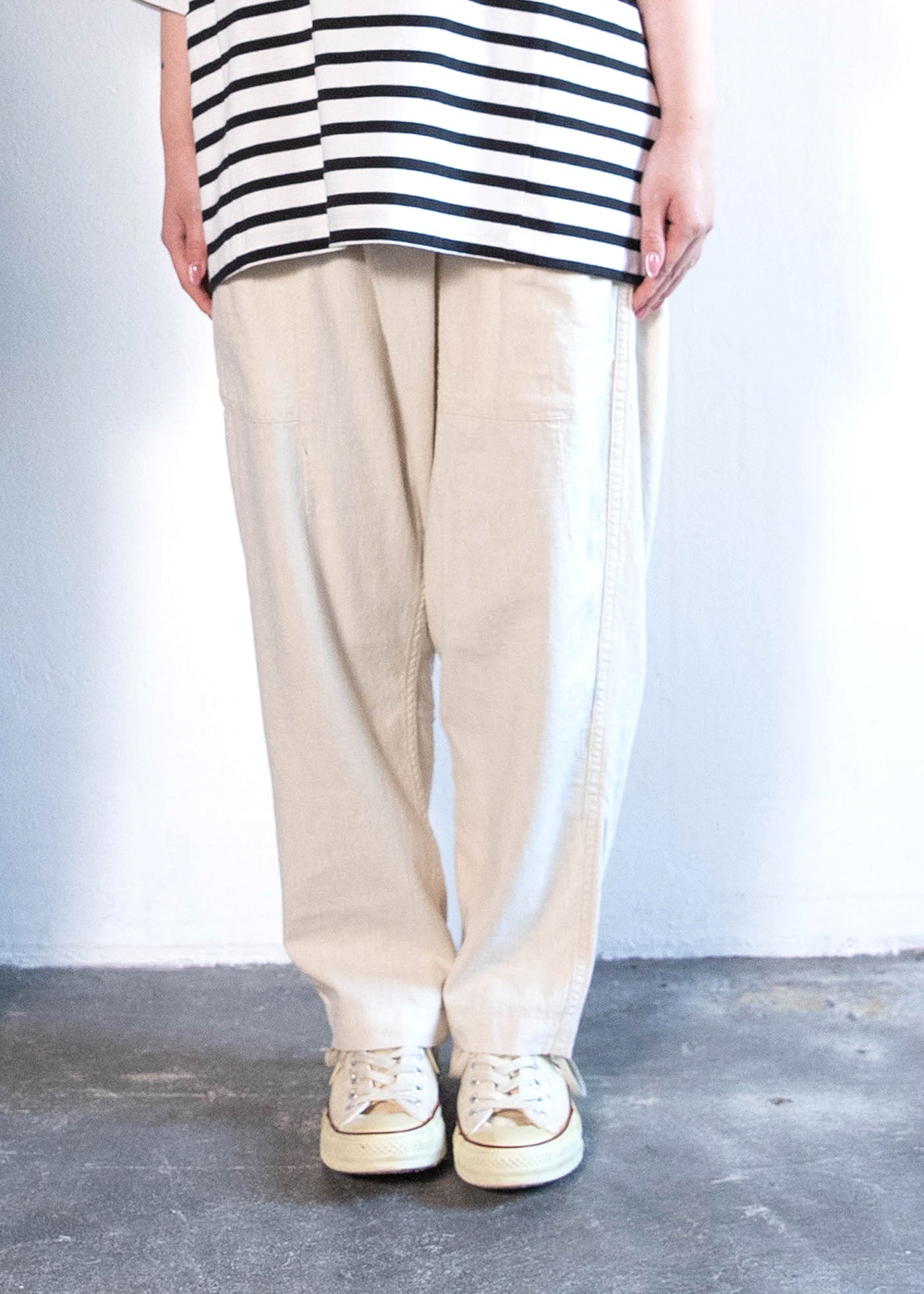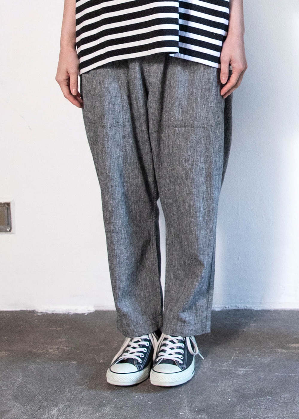 大きなポケットの実用性と、調整自由なウエストゴムの快適履き心地で、夏でも涼しくスマートに。