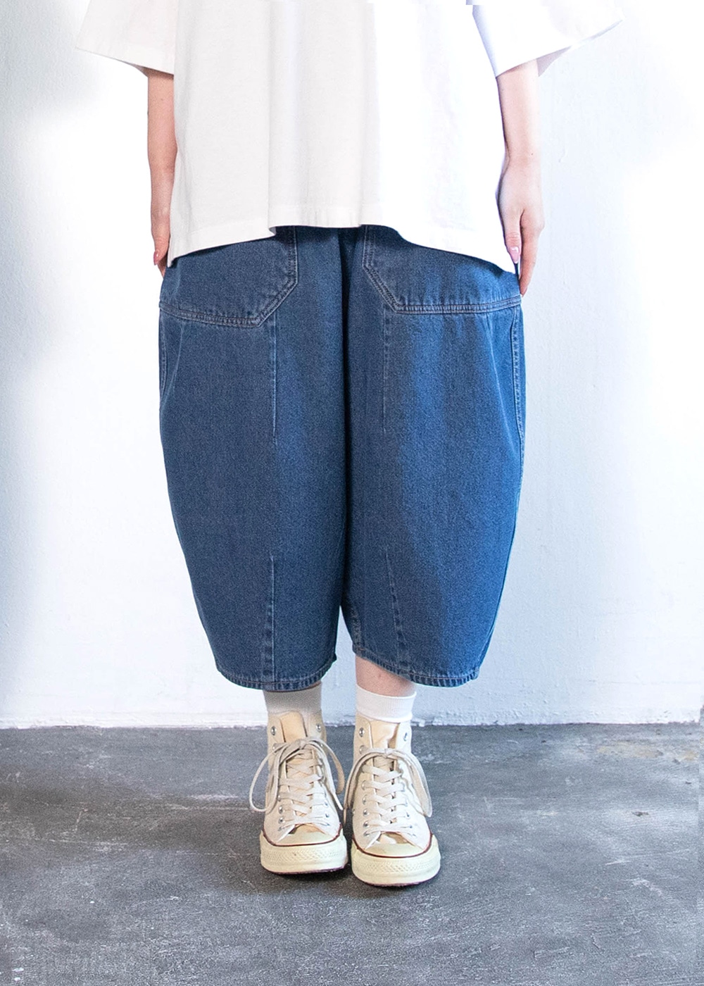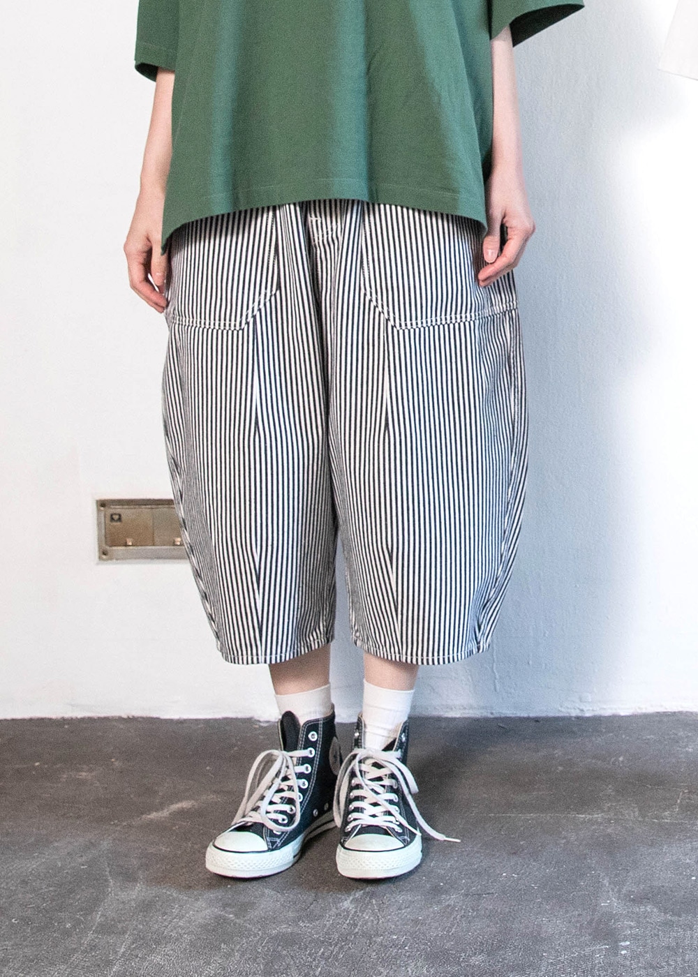 おもちゃのようなグッズ感あふれるディテールの半端丈パンツ。